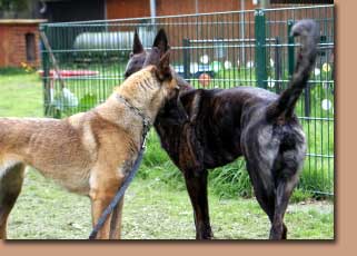 Assia (Rufname May) ist eine freundliche, sehr verträgliche Hündin. Sie kommt mit allen Hunden gut zurecht, kennt und mag Kinder, gewöhnt sich langsam an Kleintiere und Katzen. allerdings jagdt sie die in unbeobachteten Momenten auch gern.May wurde in Frankreich geboren und sollte Sport- bzw. Diensthund werden. Leider hat sie hierfür keinerlei Ambitionen. Als man erkannte, das sie hierfür nicht geeignet ist, wurde sie in ein französisches Tierheim abgeschoben. Hier fand sie eines Tages ein Deutscher, der sie kurzerhand mit nach Hause nahm. Das war wohl etwas unüberlegt, denn auch er konnte May nicht behalten. Die Süsse ist nun erstmal bei uns untergekommen, lernt die deutsche Sprache und genießt ihre Kuschelstunden. May hat noch ein wenig Umweltprobleme (zB große LKW´s). Aber mit ihrem Vertrauen zum Hundeführer wächst auch das Vertrauen zur Umwelt. Ansonsten ist May für einen Mali relativ ruhig und ausgelassen. Sie ist definitiv kein Sporthund, das Leben in der Familie lastet sie vollkommen aus. Wer also auf der Suche nach einem etwas anderen Mali ist, der ist bei May an der richtigen Adresse. Für alle die sich für Blutlinien interessieren: Mays Vater heißt "Titan", ihre Mutter ist "Scate du Happetout" ![]() ![]() ![]() ![]() ![]() ![]() ![]() ![]() ![]() ![]() |